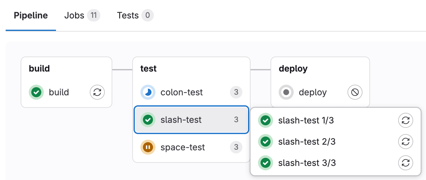 - From the pipeline graph, next to the job you want to retry, select Run again ({retry}).
